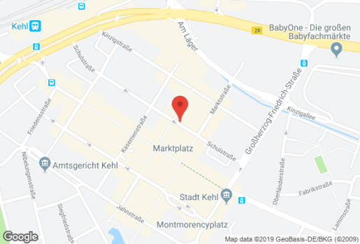 Sie finden uns mitten in Kehl. Die Kanzlei befindet sich im Centrum am Markt direkt am Marktplatz der Stadt Kehl hinter der Friedenskirche im ersten Etage.